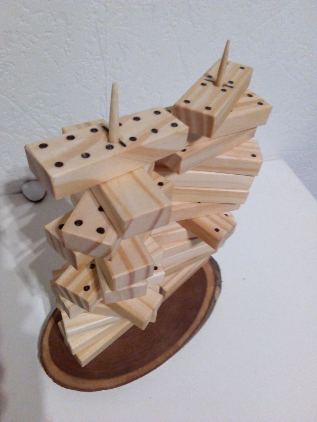 Jeu de 28 dominos sue socle en bois ciré